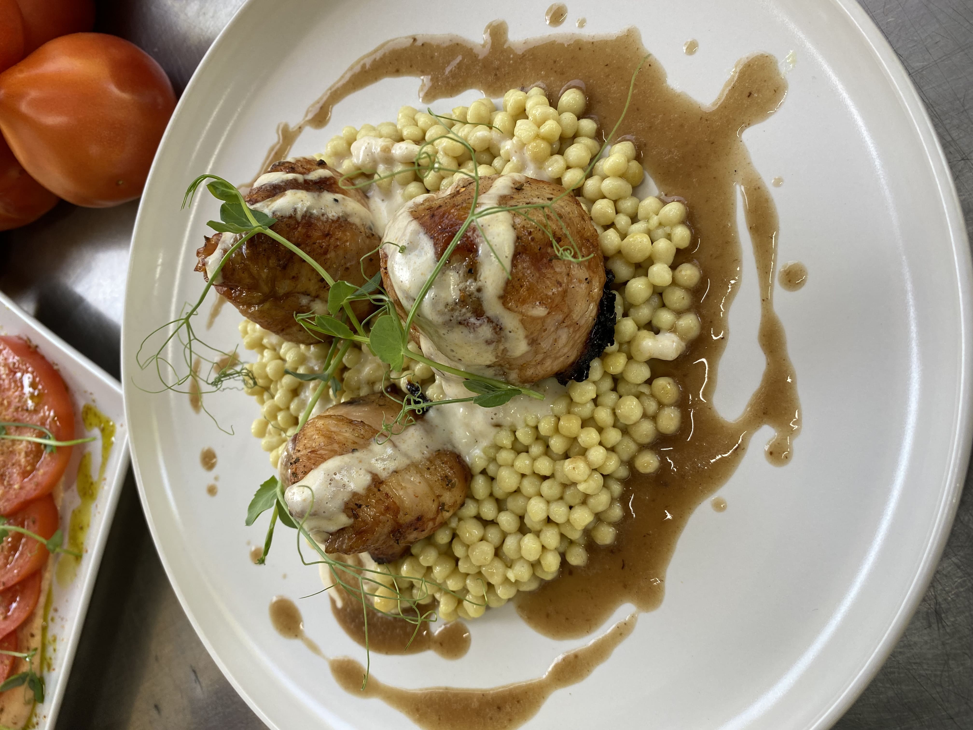 Склад курячі гомілки без кістки, чорнослив, сир горгонзолла, качана каша, вершки, копчений сир, соус думігляс п/ф, підсолена слива, сіль, спеціі