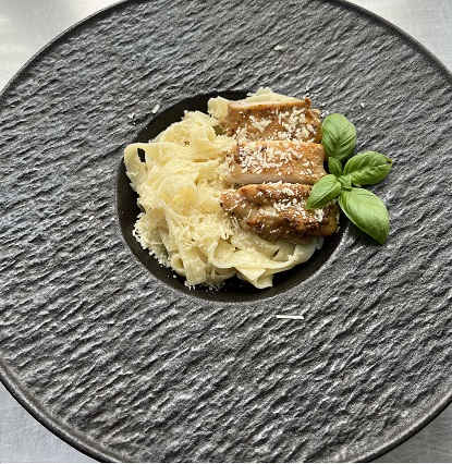 Макарони тальятелле, курка смажена, вершки, пармезан
